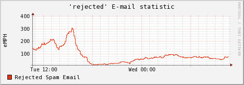 Real time statistics of E-mail traffic received by SAFE and filtered by Clement process.